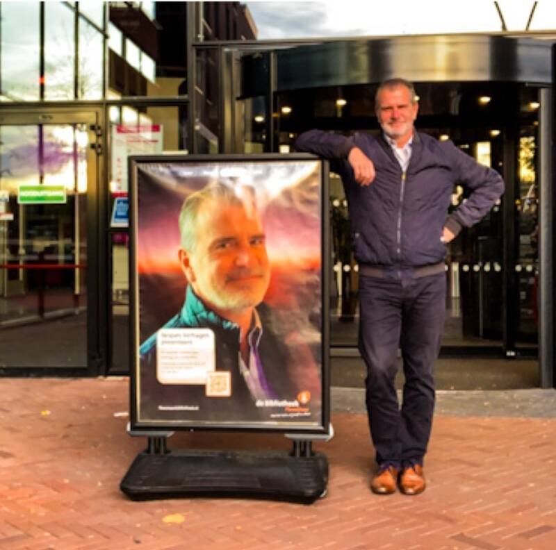 Dan kom je aanlopen bij de bibliotheek in Dronten en dan zie ik dit...Een levensgrote aankondiging van mijn lezing. Daar moest ik natuurlijk wel even naast poseren.